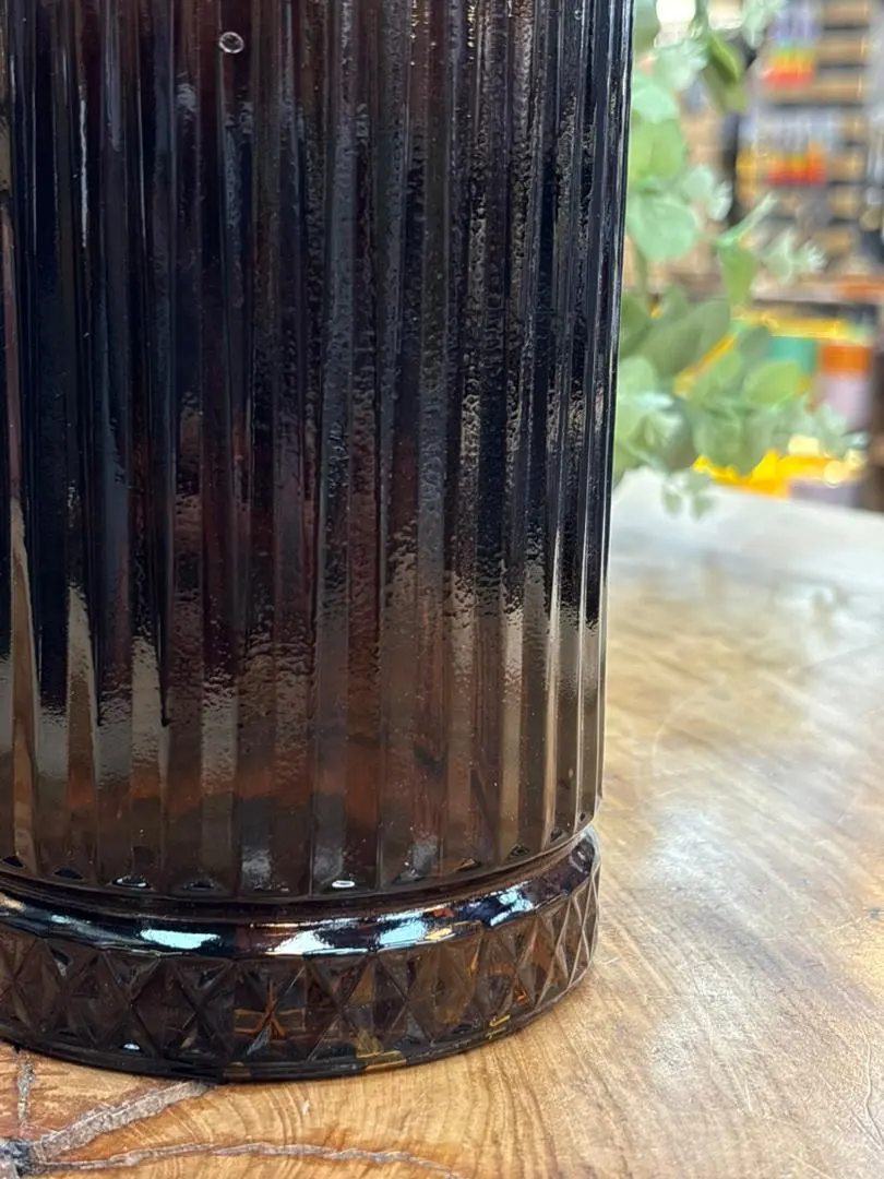 بطری شیشهای زیبا مدل دیسفان دارک با ظرفیت ۳ لیتر، بدنهی تراشخوردهی چشمنواز و درب چوبپنبهای طبیعی، ترکیبی از طراحی هنری و کیفیت بالا است. این بطری برای نگهداری مایعات خانگی و همچنین استفاده تزئینی، انتخابی زیبا و کاربردی محسوب میشود.
