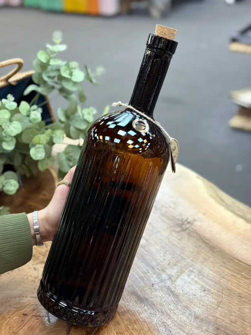 رنگ تیرهی شیشه باعث میشود محتویات داخل بطری از نور مستقیم محافظت شوند و کیفیت مایعات مانند روغن، سرکه یا عرقیات حفظ شود. درب چوبپنبهای طبیعی علاوه بر ظاهر کلاسیک و گرم، باعث آببندی کامل بطری میشود و از ورود آلودگی و هوا جلوگیری میکند.