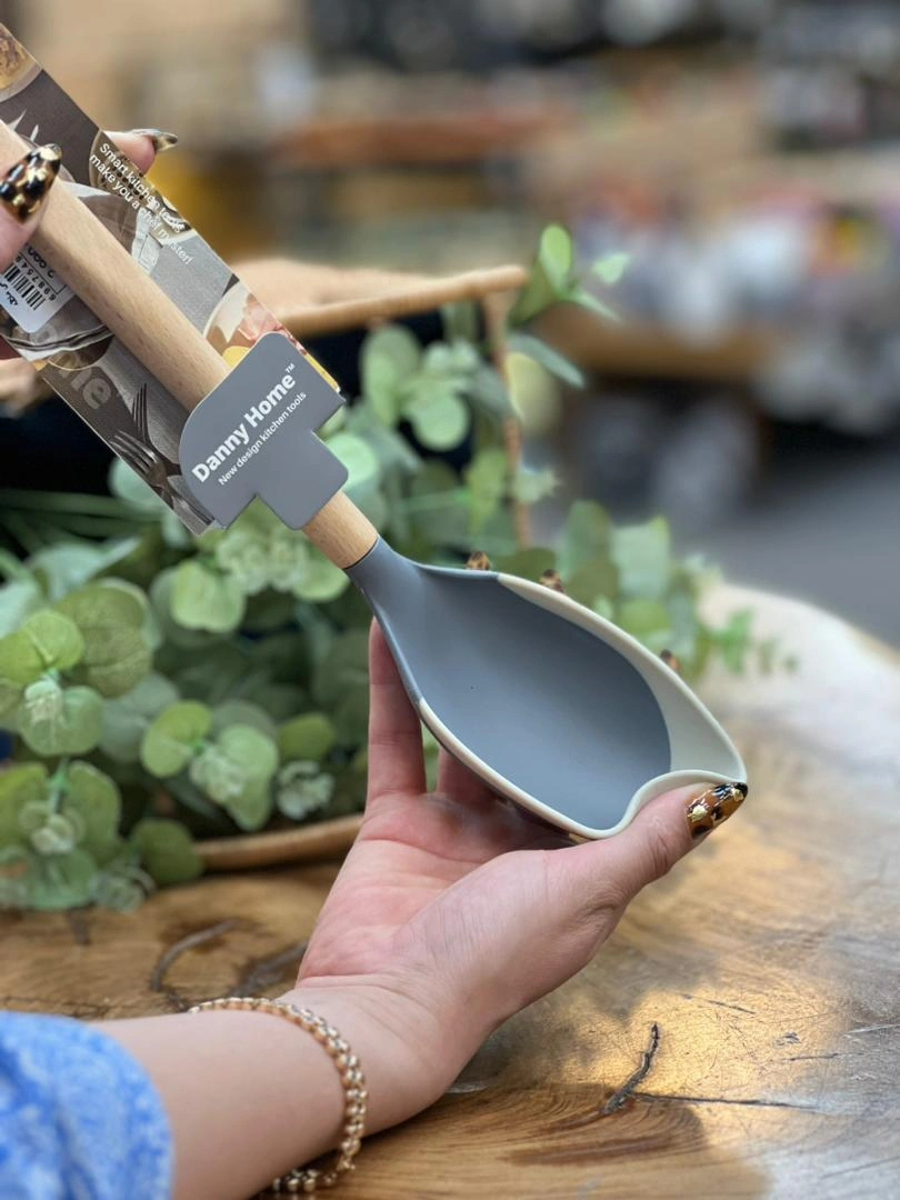 قاشق سیلیکونی دسته چوبی دنی هوم دقیقاً همان چیزی است که نیاز دارید.