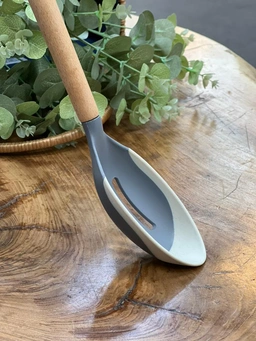جنس این ملاقه از سیلیکونی دسته چوبی است که علاوه بر زیبایی ظاهری، در برابر حرارت، زنگزدگی و تغییر رنگ مقاوم میباشد. دستهی آن به گونهای طراحی شده که در دست کاملاً راحت و محکم قرار میگیرد و هنگام سرو غذا احساس سنگینی یا لغزش نخواهید داشت.