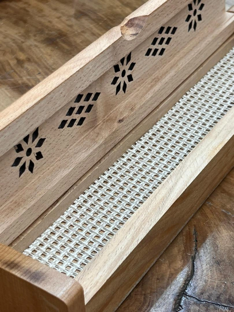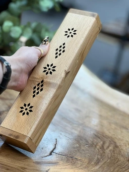 جاعودی چوبی مدل تابوت یکی از مدلهای پرطرفدار میان علاقهمندان به دکوراسیون طبیعی و ساده است. این جاعودی از چوب طبیعی و مقاوم ساخته شده و روی درب آن طرحهای مشبک زیبا تعبیه شده تا رایحه عود بهصورت ملایم و هماهنگ در فضا پخش شود. طراحی این مدل بهگونهای است که میتواند همزمان کاربردی و تزئینی باشد.