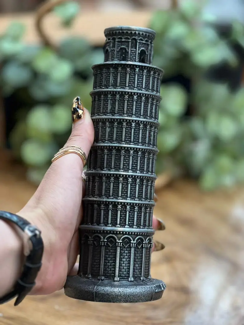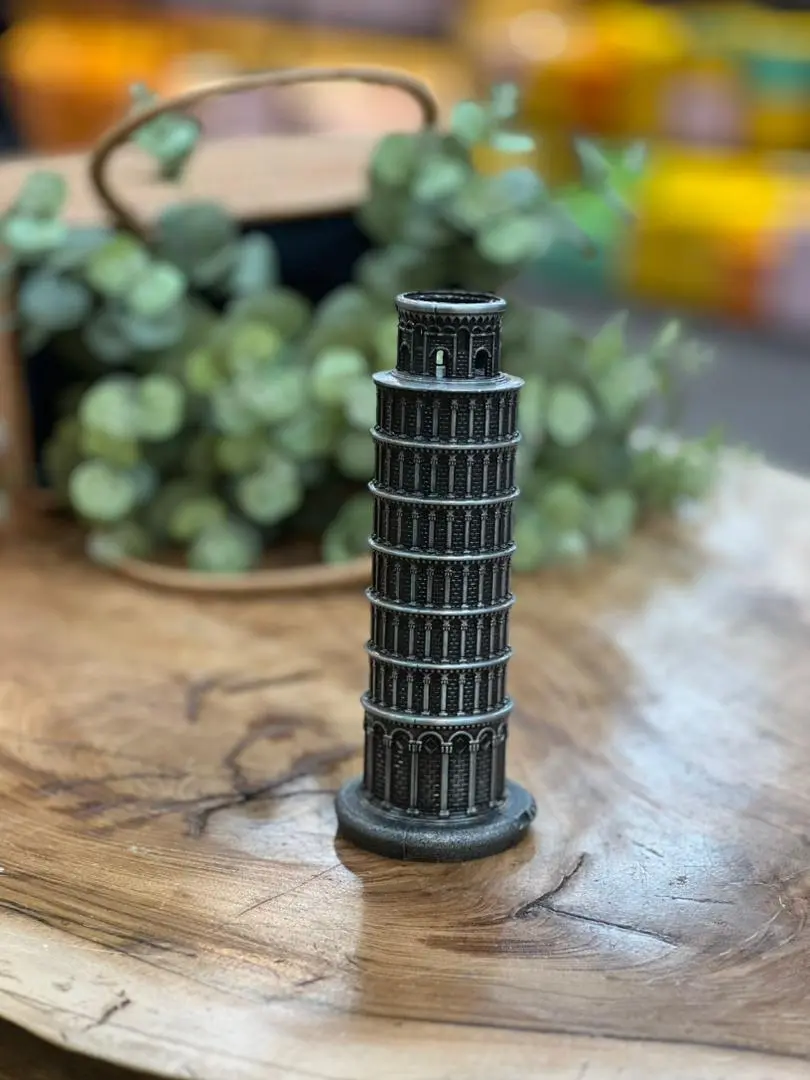 دکوری طرح برج پیزا با الهام از برج مشهور ایتالیا، یکی از خاصترین و زیباترین وسایل تزئینی برای خانه یا محل کار شماست. این مجسمه با جزئیات بسیار دقیق ساخته شده و ظاهر آن کاملاً مشابه برج پیزای ایتالیا طراحی شده است. رنگ فلزی مات، جلوهای خاص و کلاسیک به محیط شما میدهد و میتواند بهعنوان عنصر دکوراتیو روی میز، قفسه یا شلف تزئینی مورد استفاده قرار گیرد.
