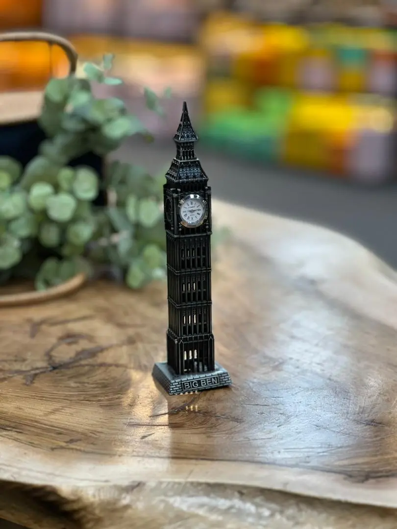 این مدل دکوری برج بیگ بن به شکلی دقیق و شبیهسازی شده از نماد معروف لندن ساخته شده است. ساعت موجود در بالای برج، نمایی زیبا و کاربردی به این دکوری میدهد. جنس مدل از پیوتر مقاوم است و به دلیل اندازه کوچک و سبک خود، به راحتی در هر فضایی قرار میگیرد.
