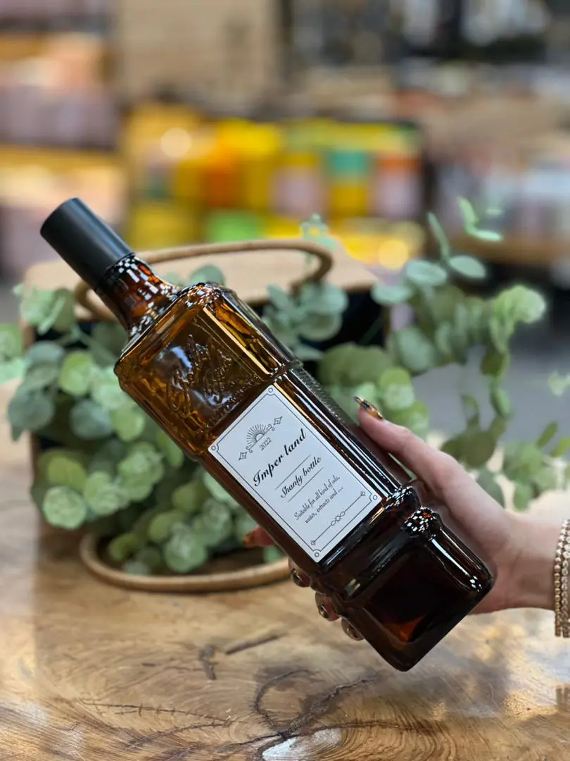 بطری شیشهای امپرلند مدل شانلی با ظرفیت ۱ لیتر و طراحی ساده اما زیبا، گزینهای عالی برای نگهداری انواع مایعات است.