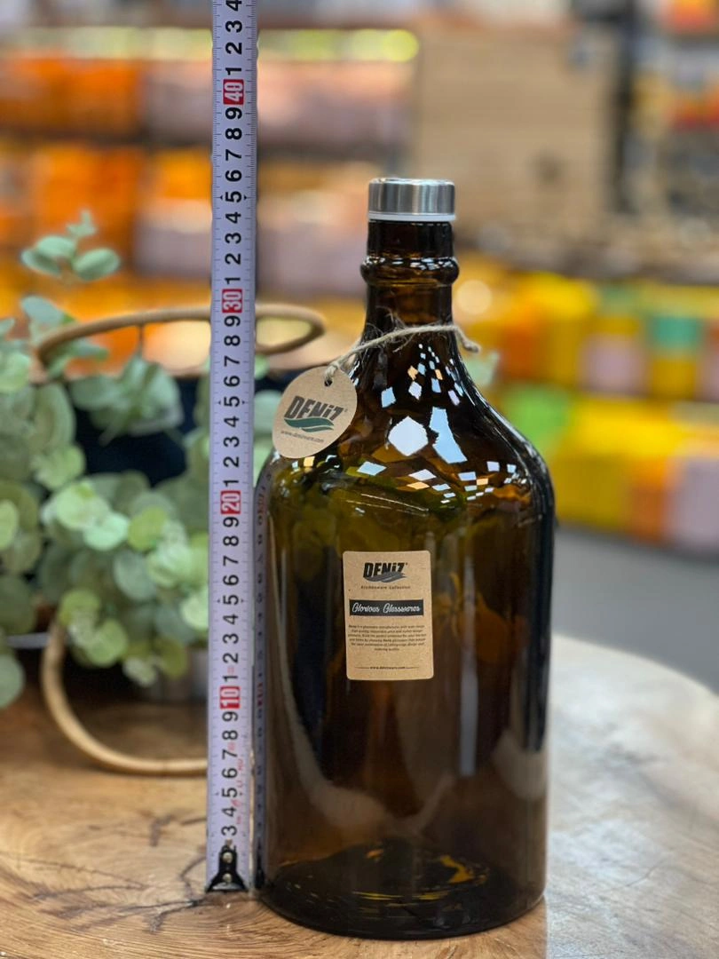 بطری شیشهای دنیز مدل پراگ سایز بزرگ با ظرفیت ۴ لیتر، یکی از کاربردیترین و زیباترین بطریهای شیشهای برند دنیز (Deniz) است.