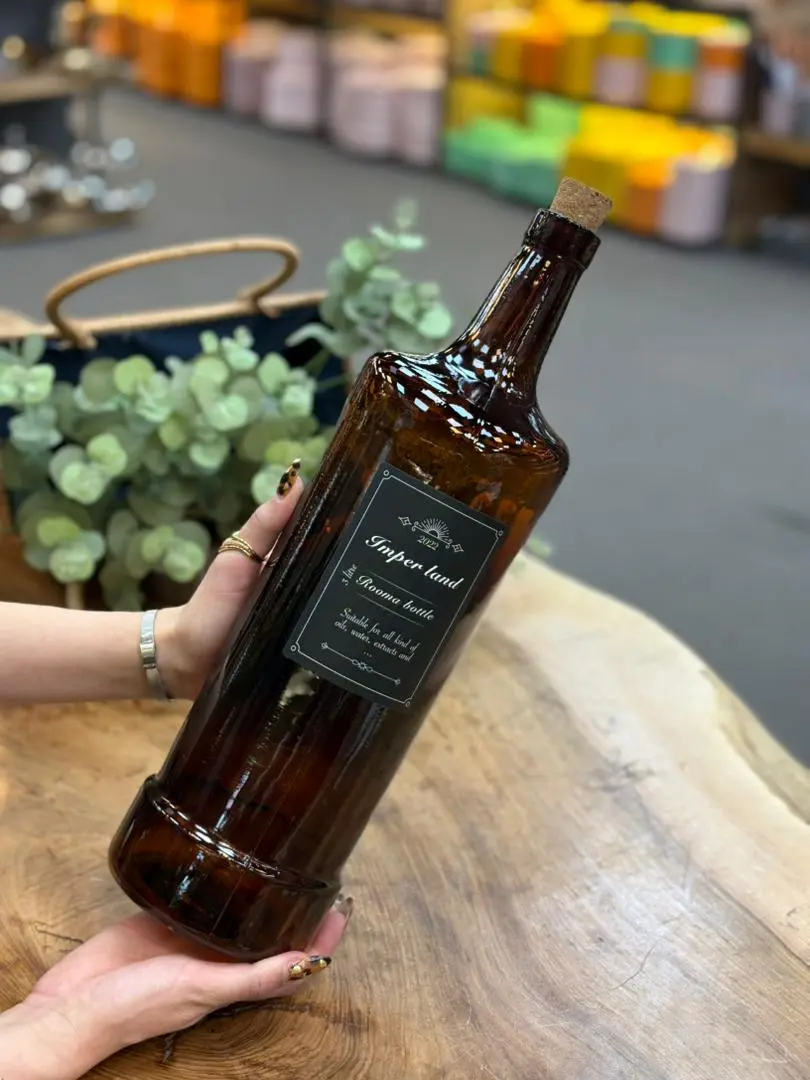 بطری شیشهای روما از برند معتبر امپرلند (Emperland) با رنگ قهوهای تیره و طراحی خاص، یکی از شیکترین مدلهای بطری بزرگ در بازار است. این بطری با ظرفیت ۳ لیتر، برای نگهداری حجم بالای مایعات مانند روغن، شربت، آبمیوه یا دمنوشهای گیاهی بسیار مناسب است.