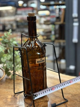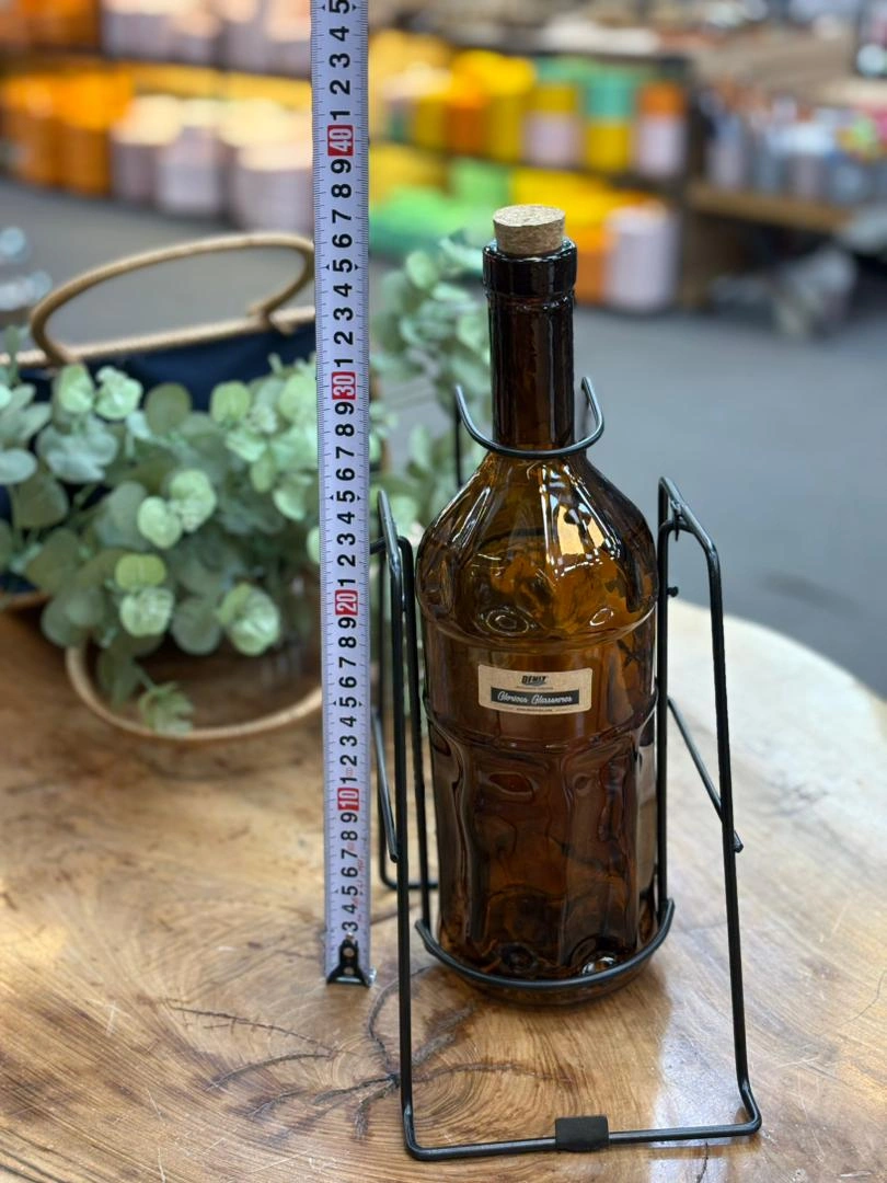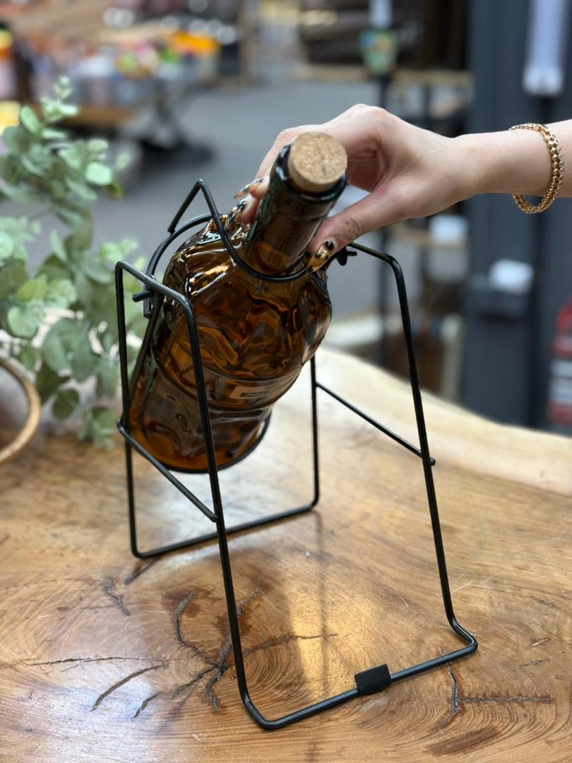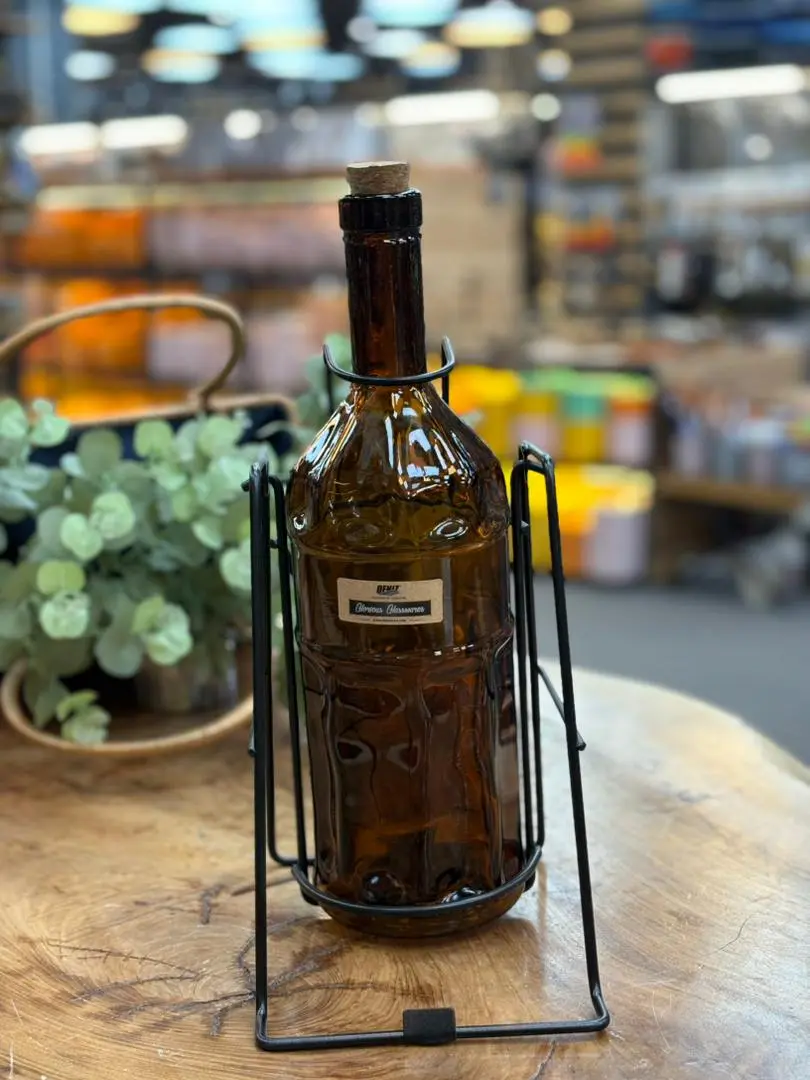 Deniz Brown Glass Bottle with Wooden Cork and Metal Stand