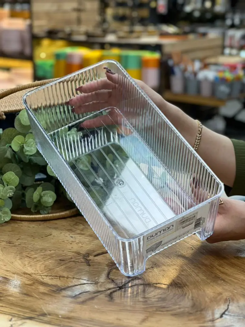 طراحی مستطیلی و دیوارههای بلند این نظمدهنده باعث میشود فضای کافی برای نگهداری بطریها، مواد غذایی بستهبندیشده، میوهها یا ظروف کوچک داشته باشید. بدنهی شفاف آن امکان مشاهده محتویات داخل را آسان کرده و ظاهر مینیمال و مدرنش با هر نوع دکوری هماهنگ است.
