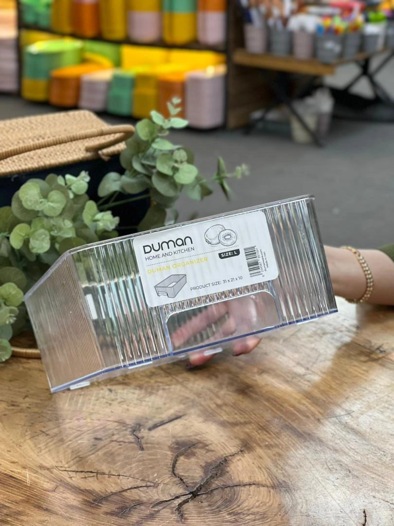نظمدهنده آکریلیک برند Duman مدل Hiwa سایز بزرگ یک ابزار کاربردی و شیک برای سازماندهی وسایل در یخچال، کشو یا قفسههای آشپزخانه است. این محصول از آکریلیک باکیفیت ساخته شده که شفاف، ضد رطوبت و مقاوم در برابر ضربه است.