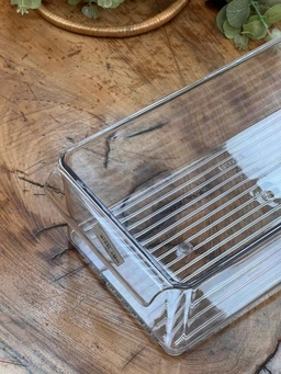 طراحی دستهدار در قسمت جلو، جابجایی ظرف را آسان کرده و استفاده از آن در یخچال، فریزر، کشو یا کابینت را بسیار راحتتر میکند.