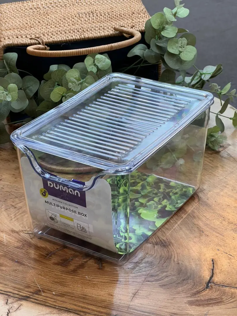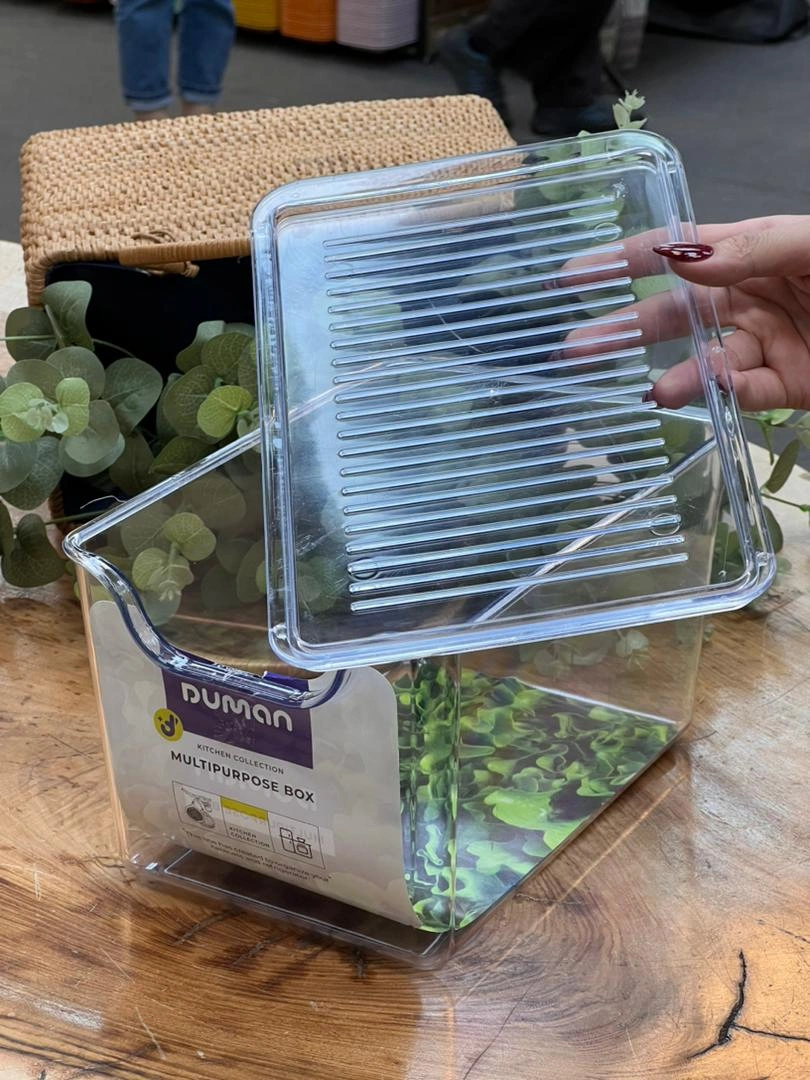 باکس یخچال دربدار دومان یک نظمدهنده کاربردی برای یخچال، کابینت و فضاهای نگهداری مواد غذایی است. جنس اکرولیک شفاف آن باعث میشود محتویات داخل باکس بدون نیاز به باز کردن درب بهراحتی قابل مشاهده باشد. این محصول برای نگهداری سبزیجات، لبنیات، تنقلات و بستهبندیهای مختلف بسیار مناسب است. طراحی دربدار، مانع از انتقال بو شده و به حفظ تازگی مواد غذایی کمک میکند. این باکس سبک، مقاوم و برای استفاده روزمره کاملاً ایدهآل است.