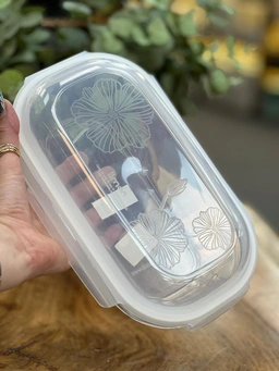 بدنهی این ظرف از شیشهی حرارتدیدهی مقاوم ساخته شده است که در برابر شوک حرارتی و ضربه مقاوم بوده و برای نگهداری انواع مواد غذایی — از سالاد و سوپ گرفته تا آجیل و دسر — کاملاً مناسب است. درب محکم این ظرف باعث میشود تا هیچگونه نشتی یا بو به داخل یا خارج نفوذ نکند و مواد غذایی برای مدت طولانی تازه بمانند.