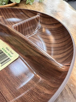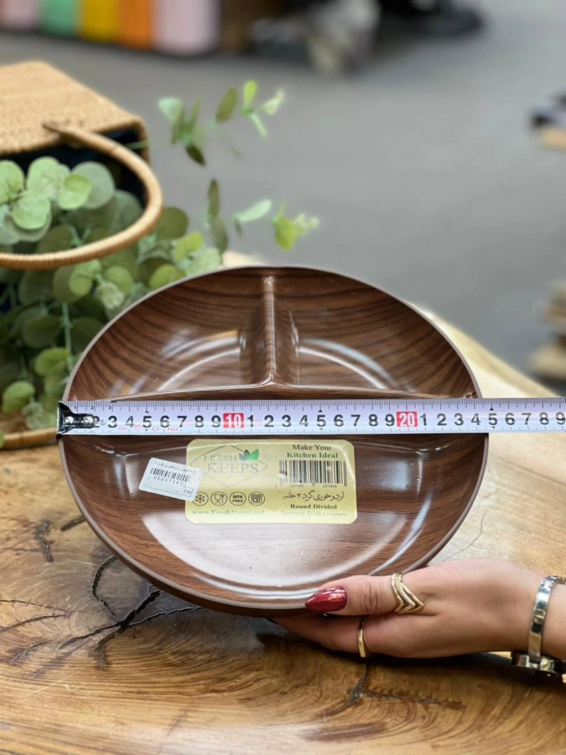 اردوخوری گرد سهخانه فرشکیپس با طرح چوب زیبا، مناسب سرو مزه، آجیل، دسر و دورهمیها. سبک، مقاوم و بسیار کاربردی.