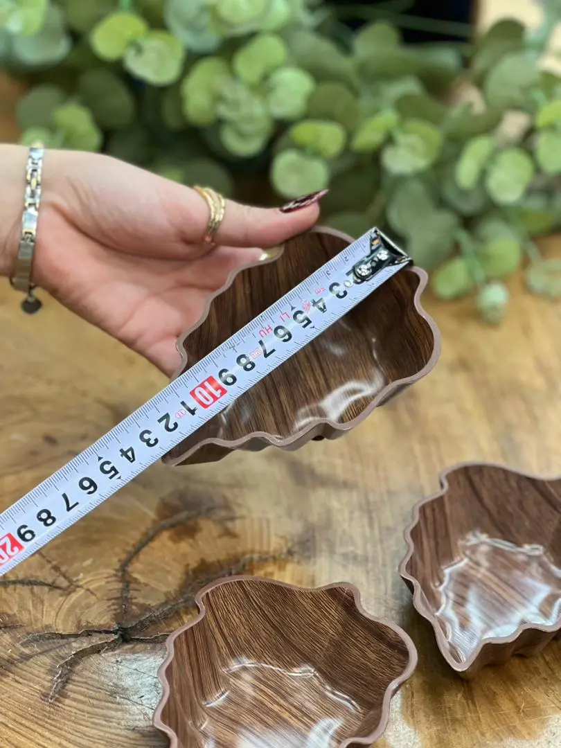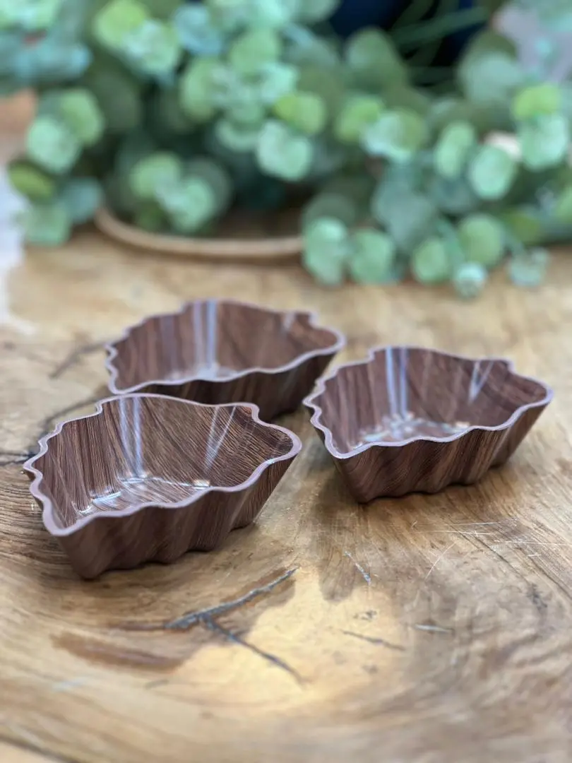 پک سه عددی کاسه طرح برگ فرشکیپس یکی از زیباترین و خاصترین ظروف سرو در دسته محصولات طرح چوب است. فرم این کاسهها به شکل برگ طراحی شده و لبههای موجدار و خوشفرم آنها در عکس محصول کاملاً مشخص است. همین طراحی متفاوت باعث میشود هنگام سرو دسر، تنقلات، آجیل یا حتی چاشنیها، میز پذیرایی ظاهری شیکتر و متفاوت پیدا کند.