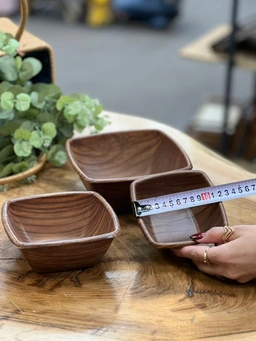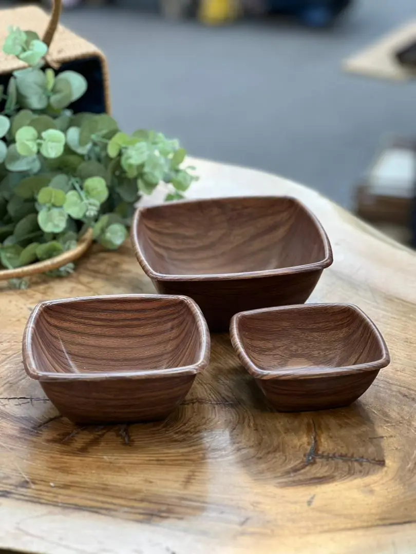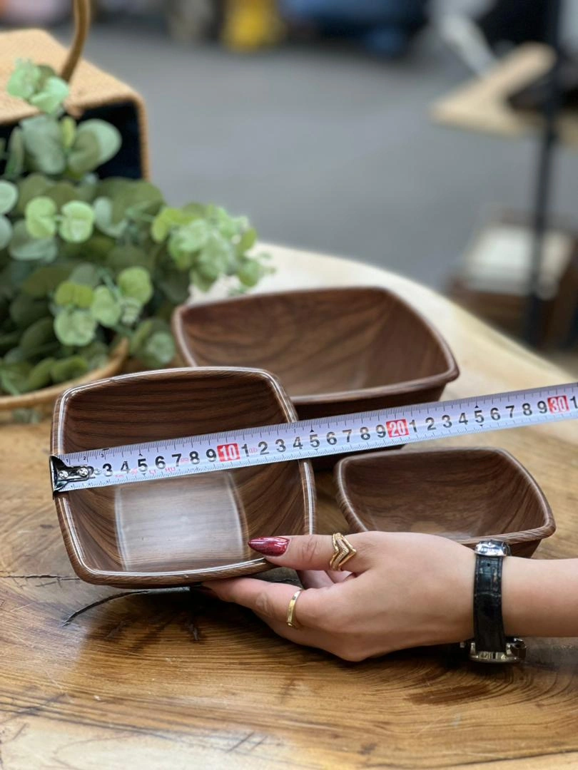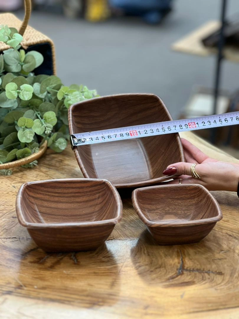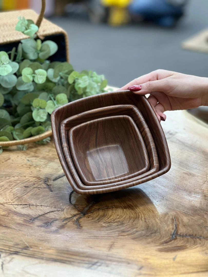 Fresh Keeps Wooden-Design Square Bowls – 3 Pieces