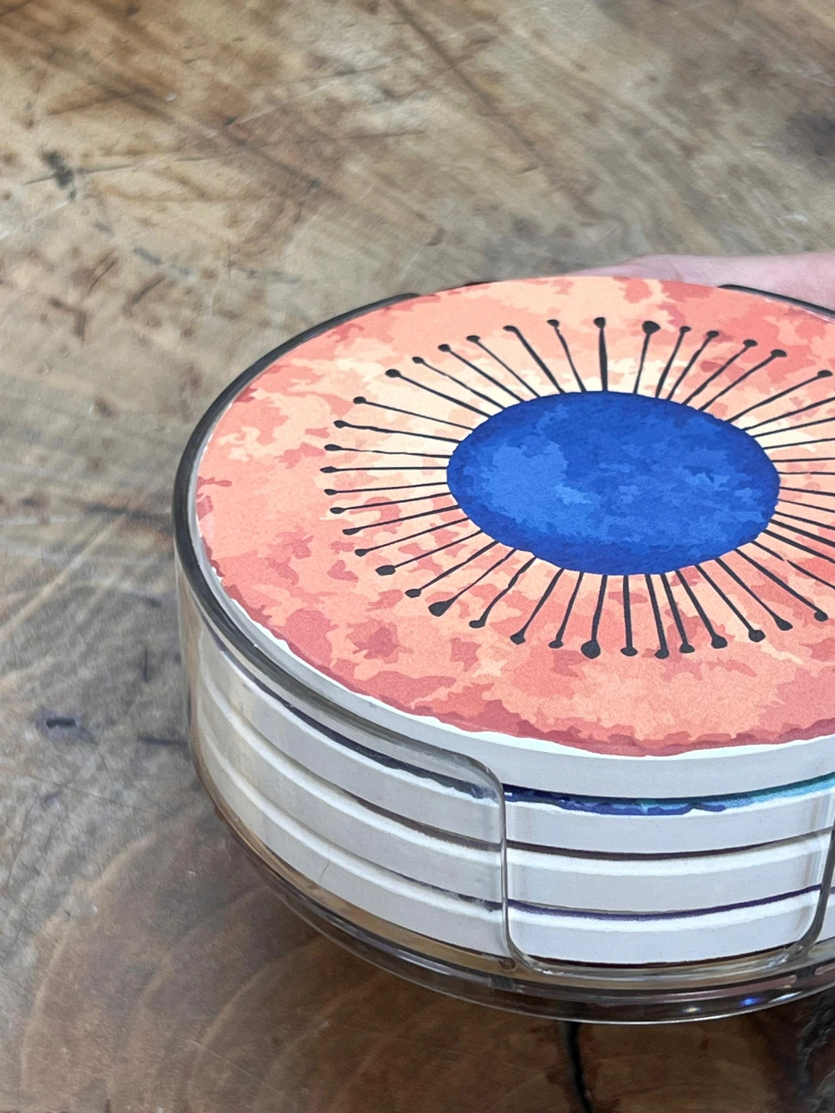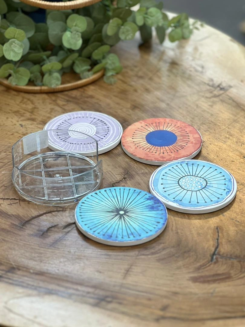 ست چهار عددی زیر لیوانی دنی هوم با طرحهای متنوع و دارای استند نگهدارنده شفاف. جذبکننده رطوبت نوشیدنیهای سرد، مناسب محافظت از سطوح و بسیار باکیفیت.