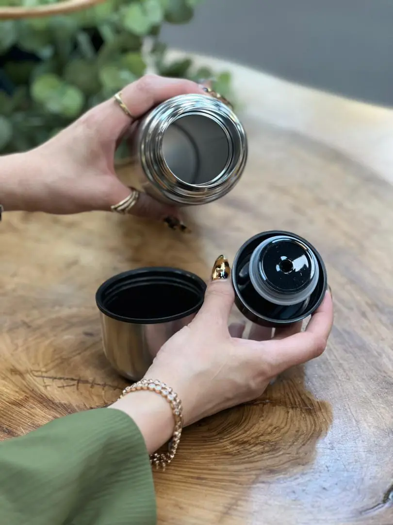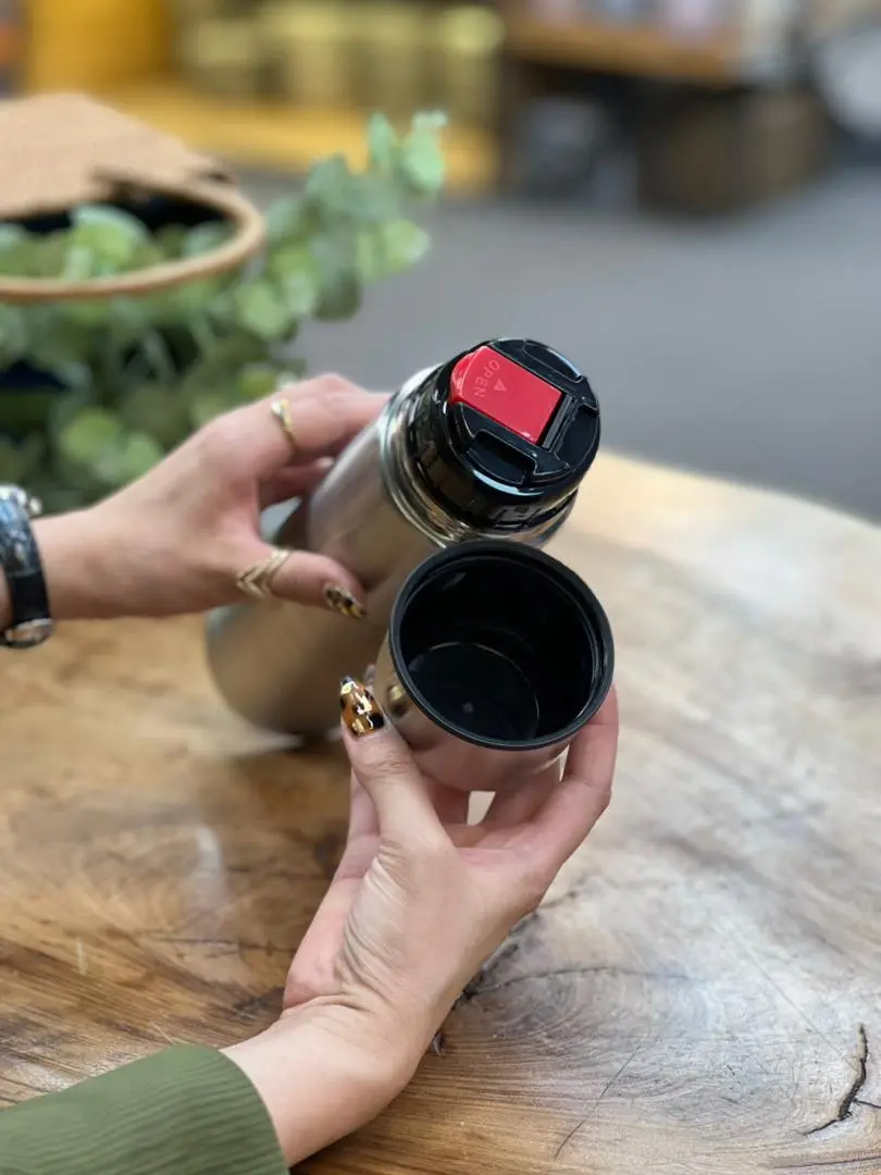 این فلاسک با درب ضدنشت، بدنهی دوجدارهی عایق حرارتی و درپوش قابل استفاده بهعنوان لیوان، نوشیدنیها را تا ساعتها در دمای مطلوب نگه میدارد.