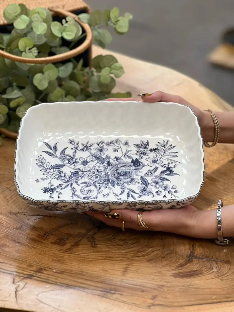 Medium Rectangular Chicken Dish Lotus Model – Gold Kish Brand, Bone China